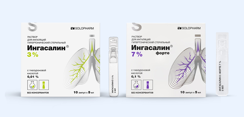 В качестве примера ингаляционной лекарственной формы для небулайзерной терапии можно привести «Ингасалин®», раствор для ингаляций от компании Solopharm. Препарат предназначен для ингаляционного введения с использованием небулайзеров и применяется для увлажнения слизистой оболочки дыхательных путей, улучшения мукоцилиарного клиренса и в составе комплексной терапии заболеваний органов дыхания. Растворная форма обеспечивает равномерное распределение препарата в виде аэрозоля и удобство применения в амбулаторных и домашних условиях при соблюдении рекомендаций по использованию небулайзера.