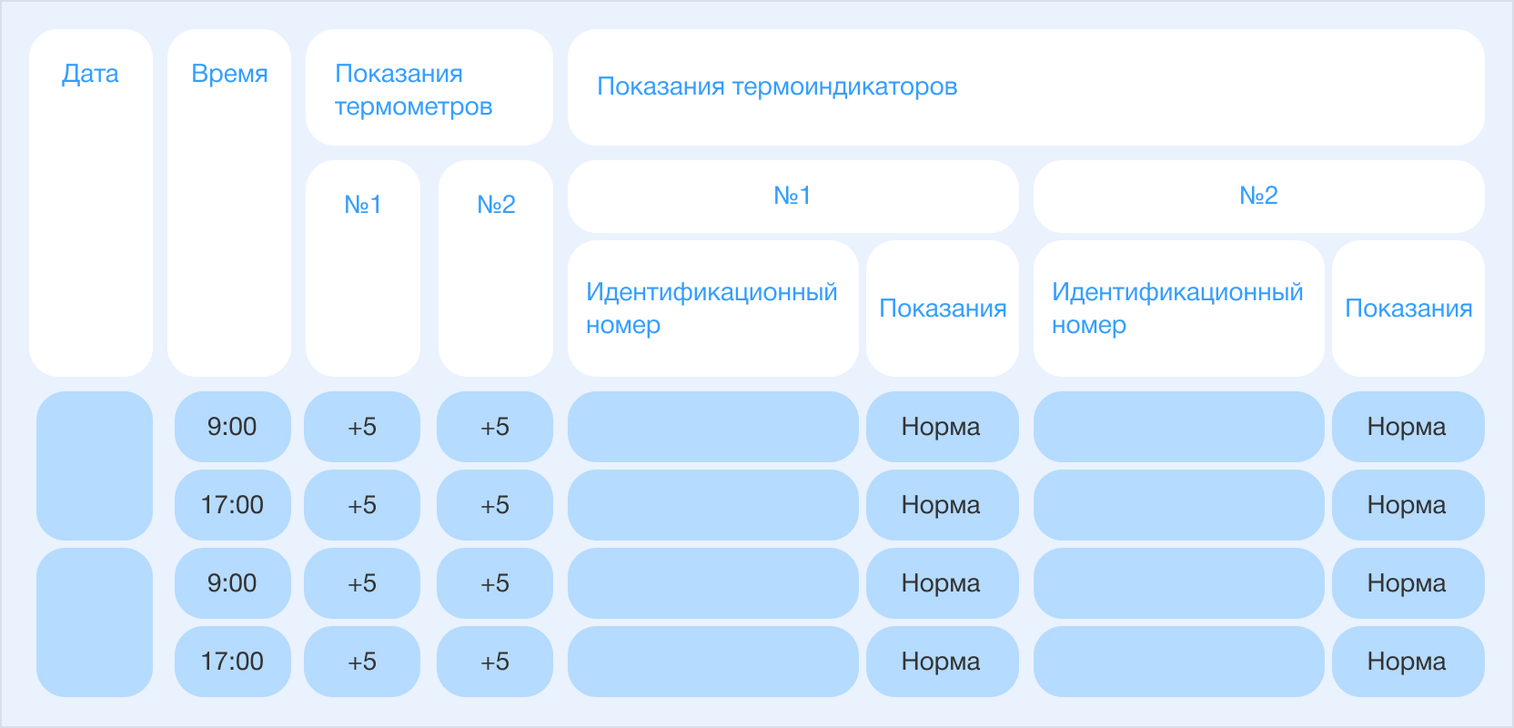 - Журнал учёта температуры должен включать определённые параметры, такие как дата и время проверки, наименование оборудования или его идентификационный номер, показания термометров и подпись ответственного лица.