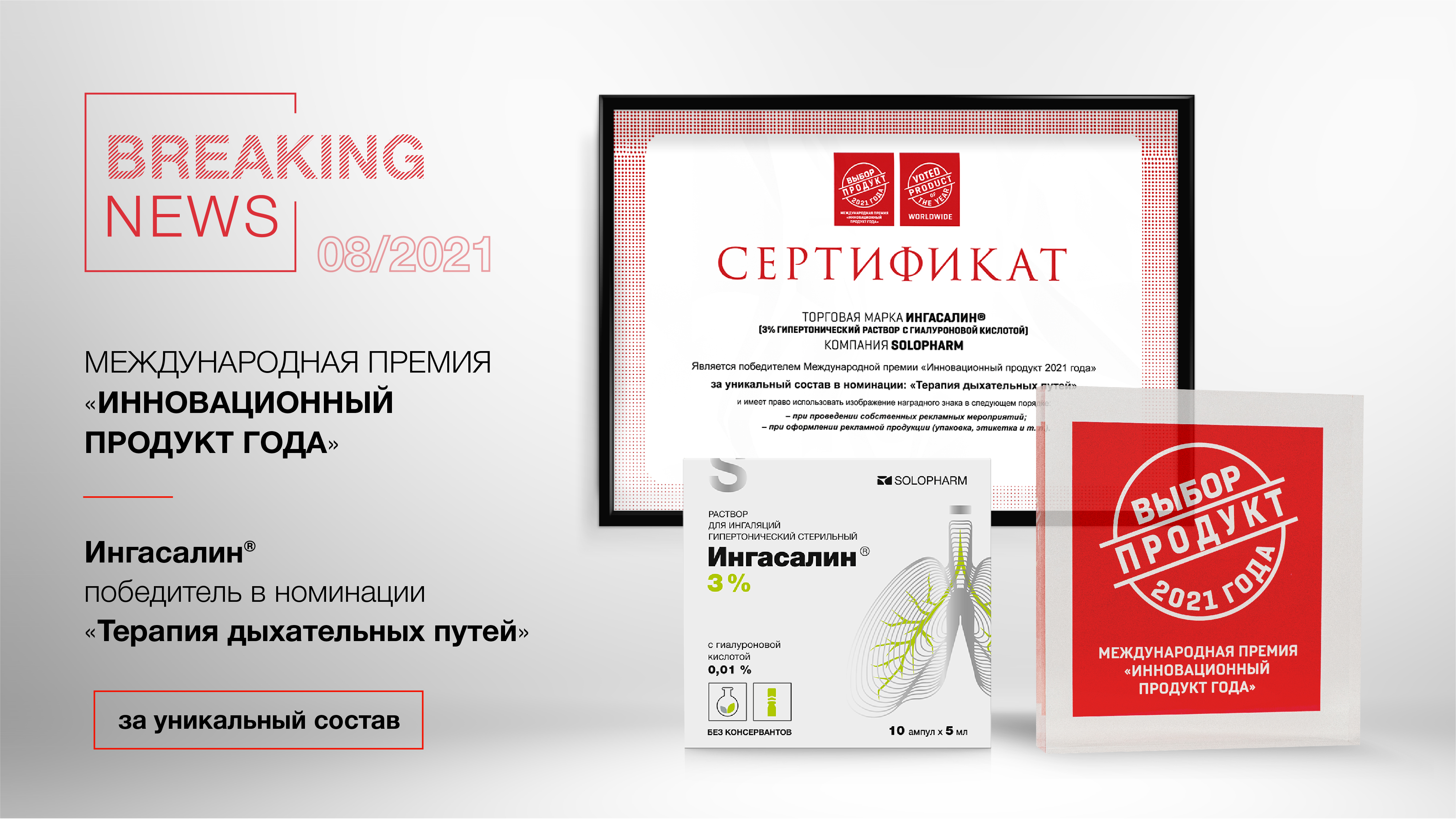 Ингасалин® стал победителем Международной премии «Инновационный продукт года» в номинации «Терапия дыхательных путей» за уникальный состав